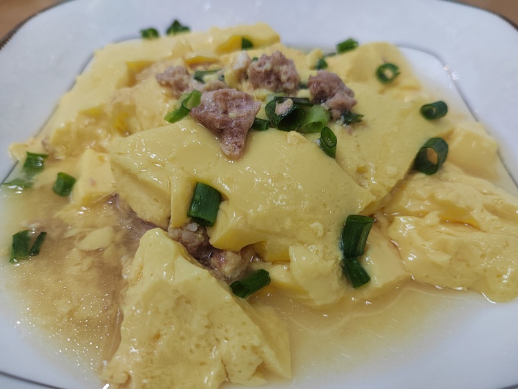 玉米饭、板栗烧鸡肉、大白菜炒白蘑菇、番茄豆腐汤