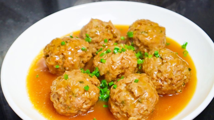 白米饭、红烧牛肉丸、山药黑木耳炒肉丝、娃娃菜粉丝汤