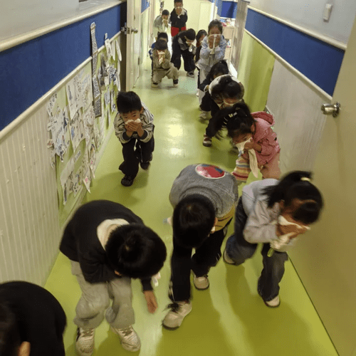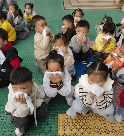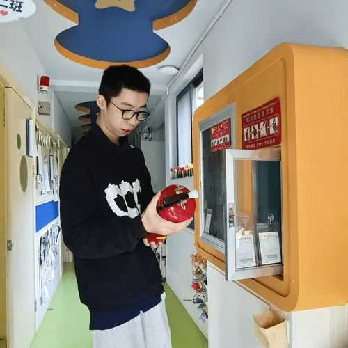 “呜——呜——”随着消防警报响彻幼儿园,逃生演练正式开始。