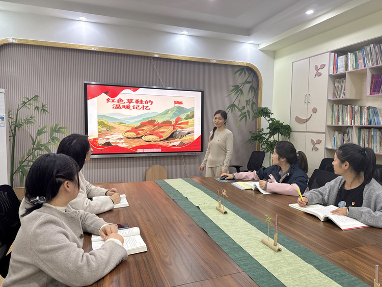 “声临其境”故事会上,祝丽秀同志分享《红色草鞋的温暖记忆》,以鲜活叙事传承红色基因,凝聚奋进力量。这种回归本质的教育理念,需要我们党员用行动践行初心的精神一脉相承,而将这些鲜活的故事融入保教实践,正是“提质”的重要体现。