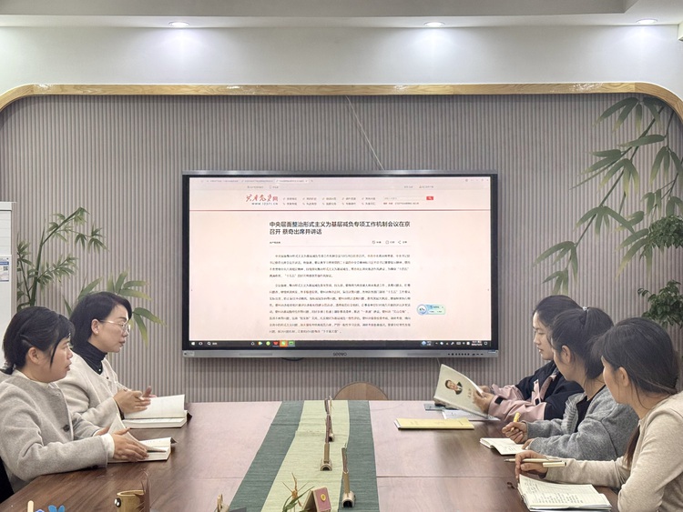 全体党员在张小玲书记的带领下,学习中央层面整治形式主义为基层减负专项工作机制会议,会议明确提出“纠治基层隐形负担”“弘扬‘短实新’文风”等要求,为破解幼儿教育领域的形式主义顽疾提供了根本遵循。为贯彻会议精神,进幼支部需落实以“减负增效”为核心,推动幼儿教育回归以幼儿为本的初心。