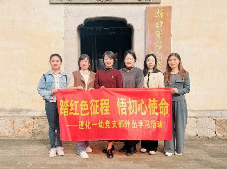 为深入学习贯彻党的二十届四中全会精神,切实把习近平总书记系列重要讲话精神及省委改革攻坚部署转化为保教工作实效。近日,进化一幼党支部以 “理论学习+红色实践” 相结合的形式开展主题党日,通过多维学习筑牢思想根基。同时,赴湖州长兴县新四军纪念馆追寻红色足迹,在学思践悟中传承铁军精神、践行育人使命。