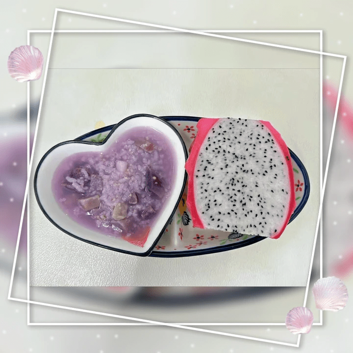 自制点心:紫薯山药二米粥 甜蜜水果: 火龙果