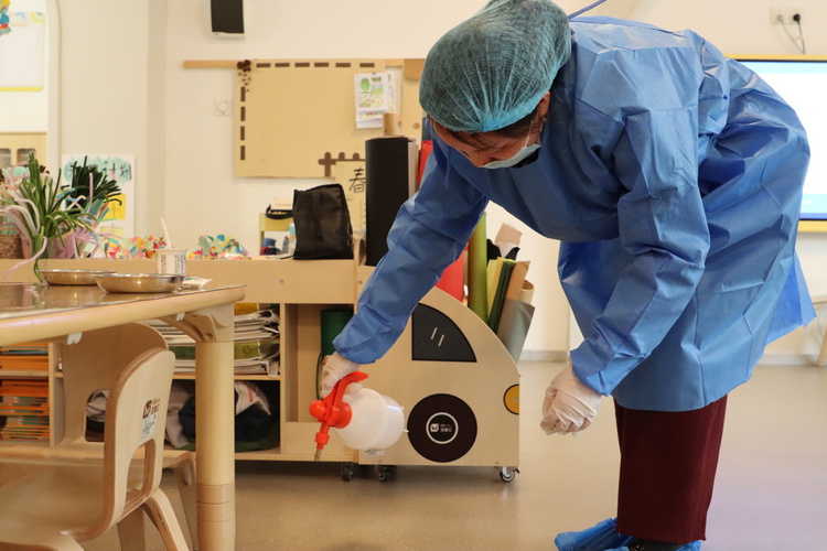 确定食物中毒后,保育员老师做好自我防护后,对引起中毒的食物进行处理,对环境进行彻底消毒。
